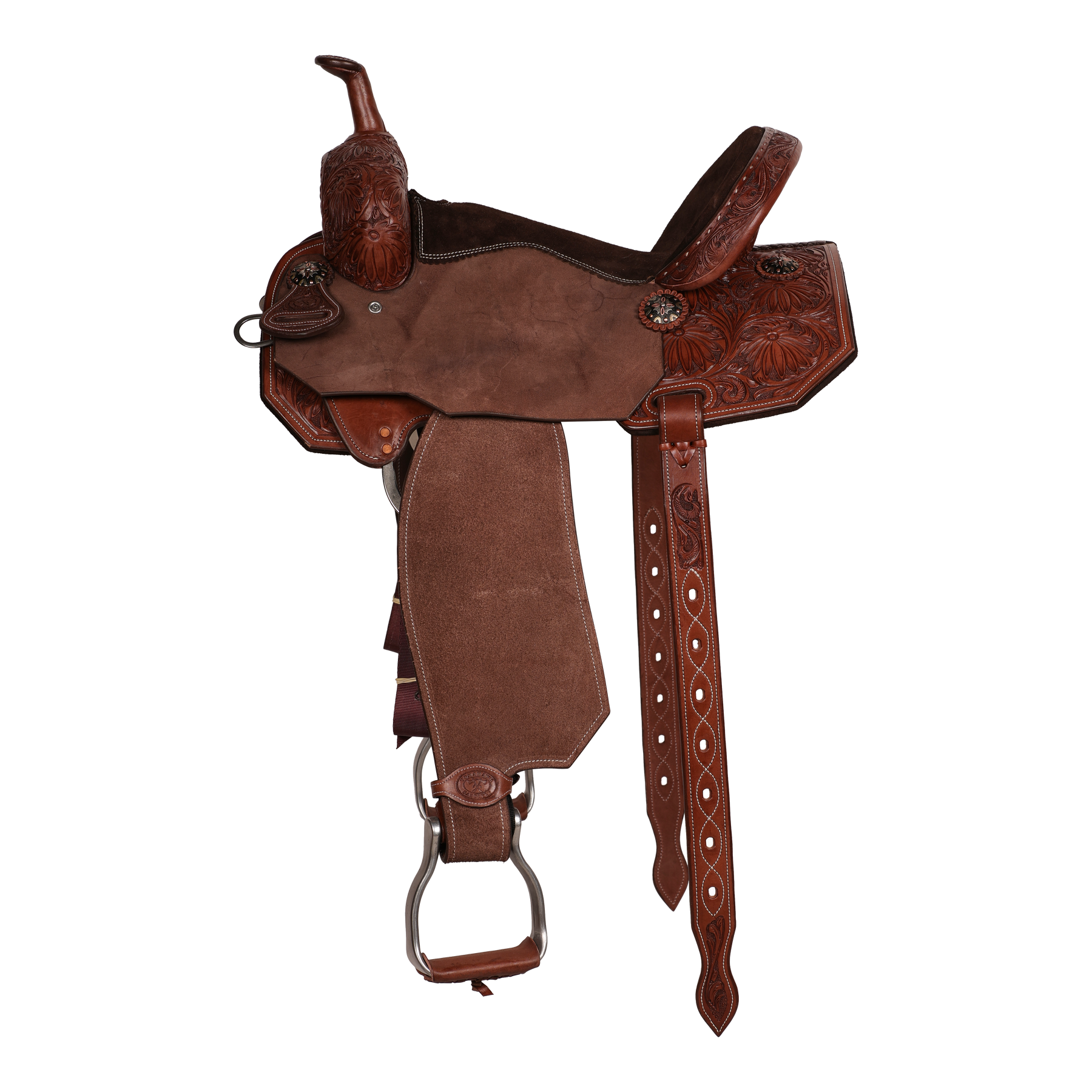 Built on a spinal relief wood tree, this saddle is designed to reduce pressure along the horse’s back while offering unbeatable comfort and fit.